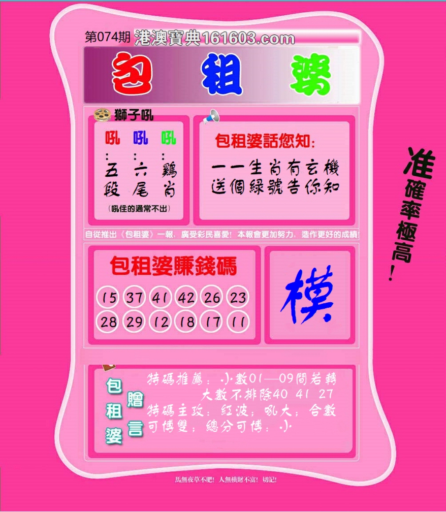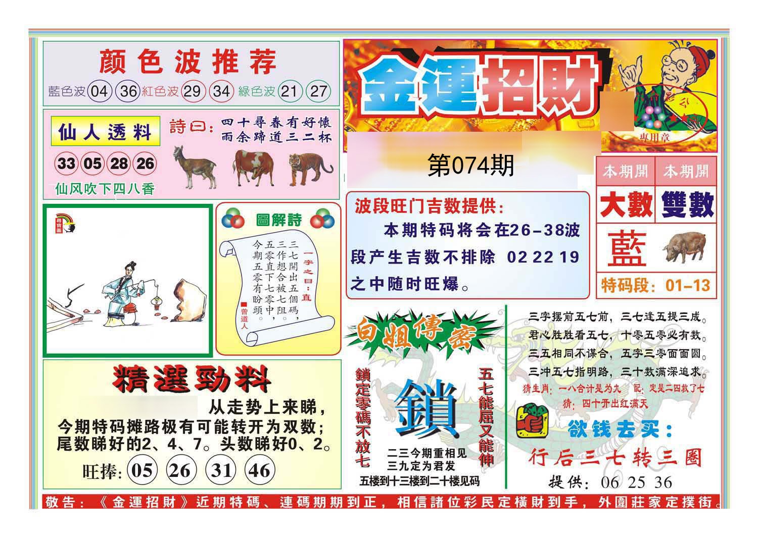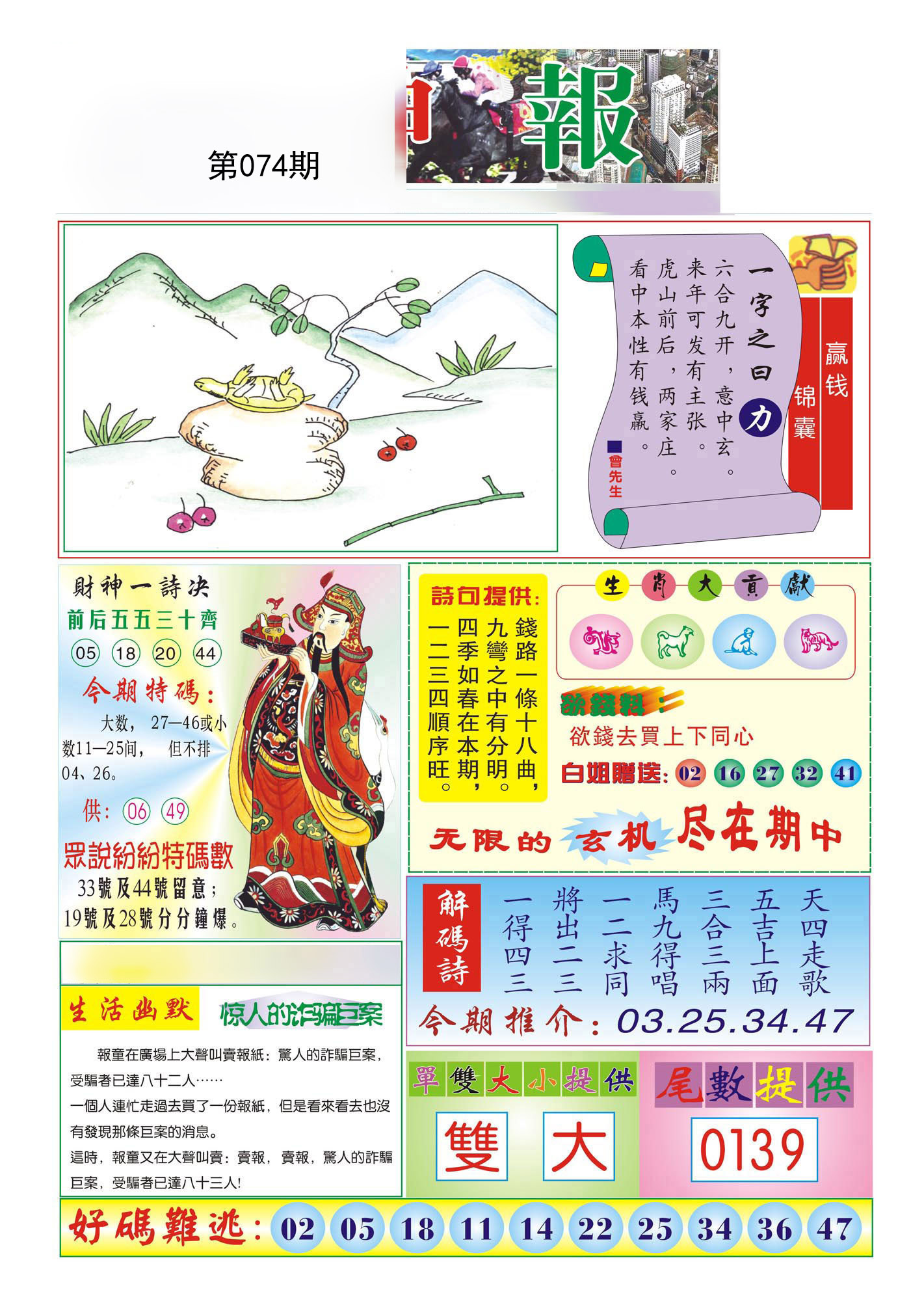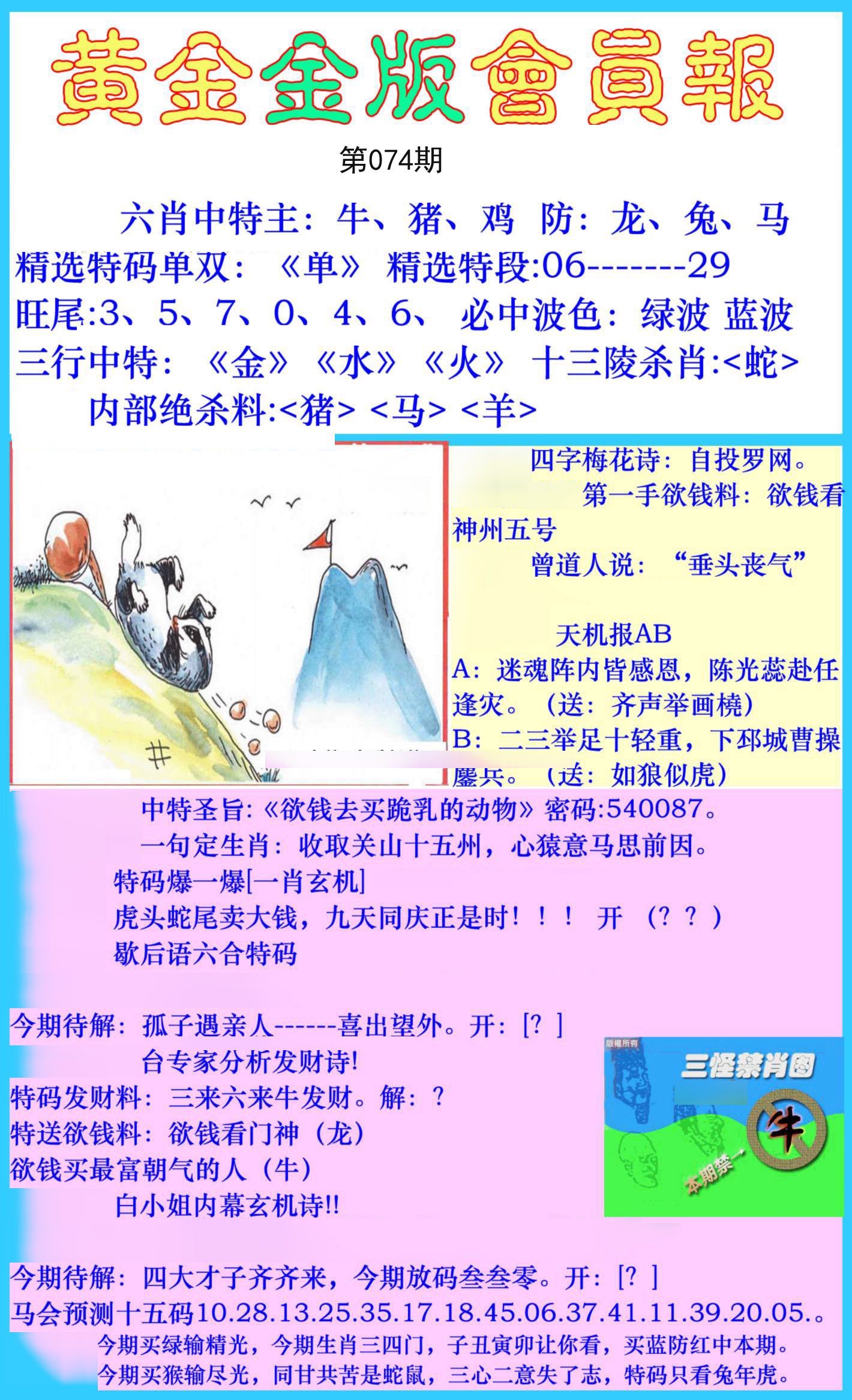 | 074期:必中五肖: 牛兔虎鼠蛇 |