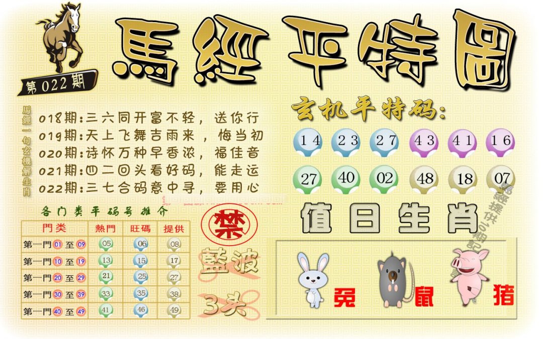 | 020期:必中七肖: 鼠狗猴羊鸡虎兔 |